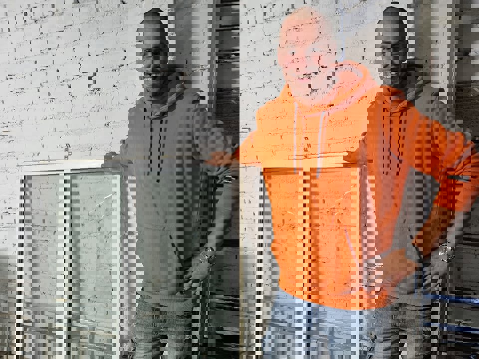 Så langt er betonggulvet i det vel 50 m² store rommet ferdig støpt. FagFlis Grenland med Jon Lysø fra Lions Club Porsgrunn har tilgodesett TabitaSenteret med keramiske flis som skal dekke gulvet.